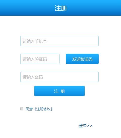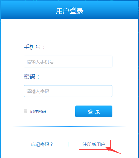 2.点击注册新用户按钮以后进入到注册窗口,输入您的手机号, 再点击发送验证码,然后将手机上收到的短信验证码输入到验证码输入框里; 再输入密码点击注册按钮,如图: