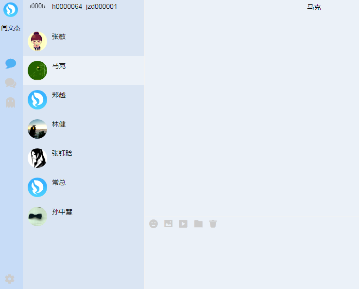点击页面下方的 “聊天”按钮打开即时通讯界面,在左下角进行添加同事和添加分组,点击同事账号发送消息。如图:
