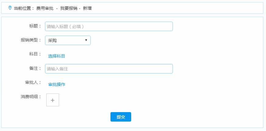 您好,进入费用审批-我要报销,可看到新建申请按钮,点击后即可新建申请,选择相应的审批模板即可。如图: